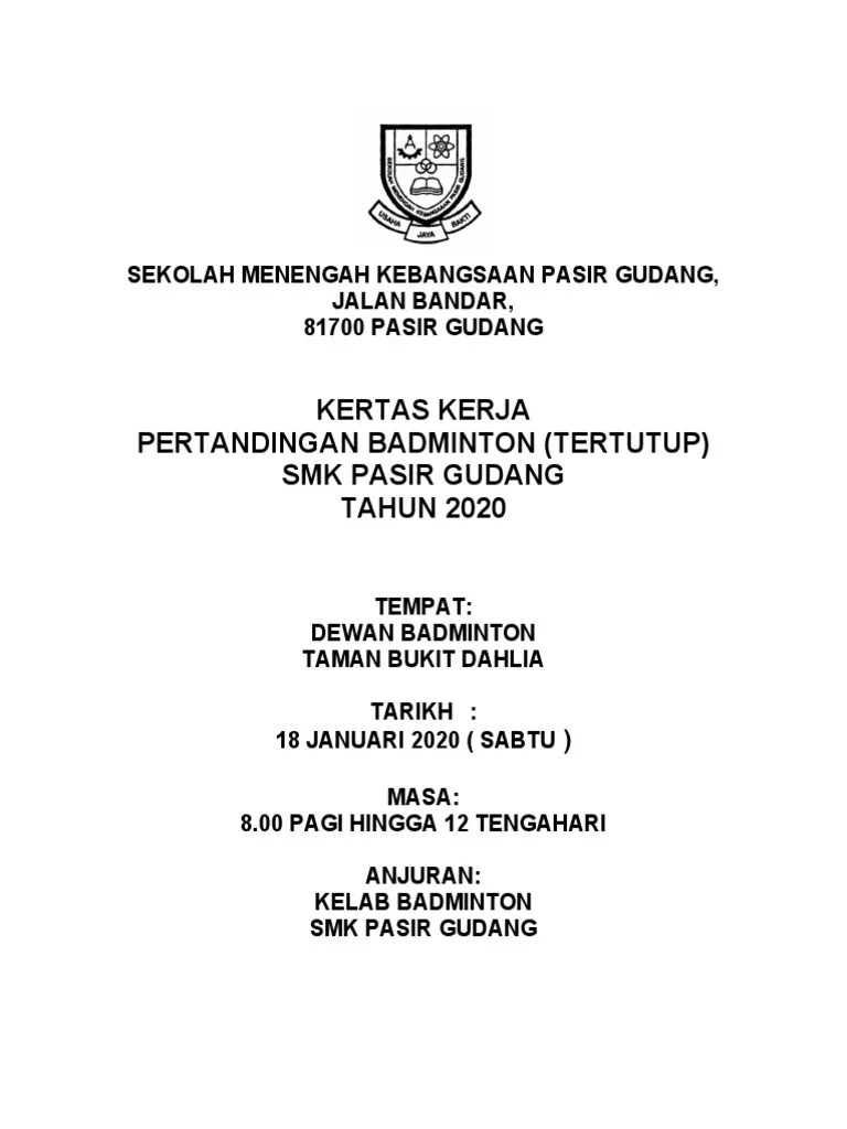 Contoh Kertas Kerja Pertandingan Badminton Peringkat Sekolah - Kertas Kerja Karnival Sukan Permainan 1. Dalam meniti arus kemodenan yang berteraskan sains dan teknologi maklumat, faktor kesihatan masyarakat pada hari ini berada pada tahap yang membimbangkan pihak berkuasa … B tempat pertama pertandingan bahas di daerah studio barat daya dimenangi oleh sekolah menengah kebangsaan balik pulau. Yaakub menunjukkan se….sangkar yang berisi dua…. Stadium yang terkemuka di ibu kota. Singapura, secara rasminya republik singapura, merupakan sebuah negara pulau yang terletak di tepi hujung selatan semenanjung melayu, 137 kilometer (85 bt) di utara garisan khatulistiwa, di asia tenggara.ia terpisah dari malaysia dengan selat johor di utara, dan kepulauan riau indonesia dengan selat singapura di selatan. Panjang karangan anda hendaklah antara 200 hingga 250 patah perkataan. Singapura ialah pusat kewangan keempat …